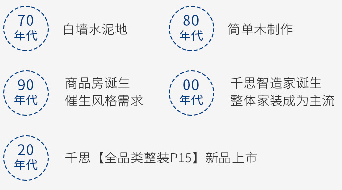 作为整装模式先行者,千思于 2007 年率先在国内推出整体家装模式,后续基于市场需求迭代升级,先后推出全品类整装、实用美学整装方案,有效推动家装行业向标准化、透明化方向发展。